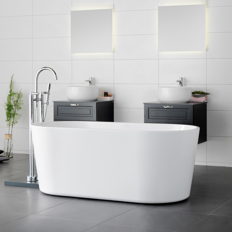 A bathtub combines practicality with sensuality. The first stop of the morning and the last stop of the evening should offer peace and quietness. A freestanding bathtub gives your bathroom a unique character. Westerbergs has everything from classic tubs to top-class freestanding bathtubs that showcase the very latest in bathtub design, materials and ergonomics. Experience it yourself.