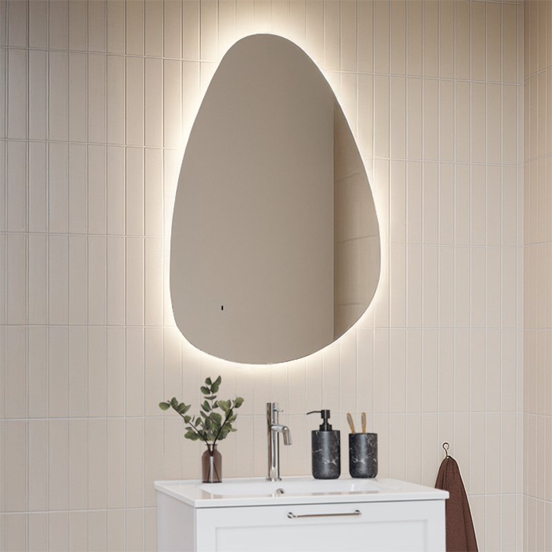 Mirror Westerbergs Vind combines a soft, asymmetrical shape with functional backlighting that spreads a warm, inviting light in the bathroom. With the help of the integrated motion sensor, you can easily turn on, off and change the brightness of the mirror with simple hand gestures, and avoid unnecessary fingerprints on the mirror glass.