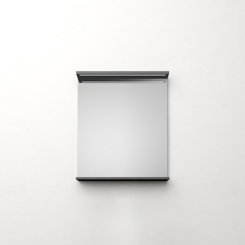 Mirror with functional lighting and recessed LED profile with warm white light. Practical shelf for storage. Easy installation for one person with adjustable suspension bar. Prepared for electrical installation. IP24.