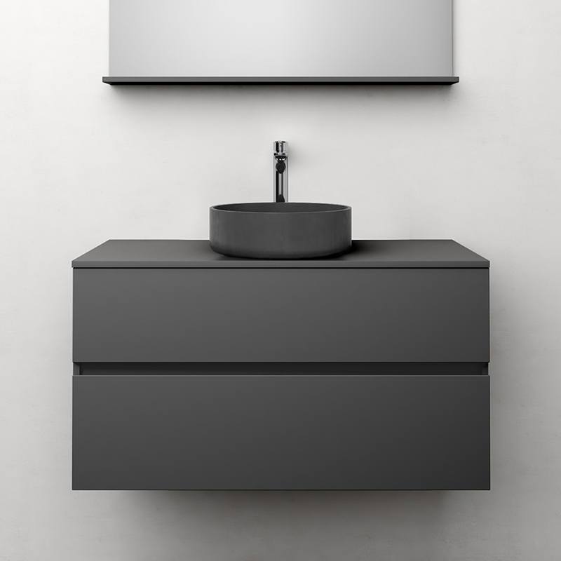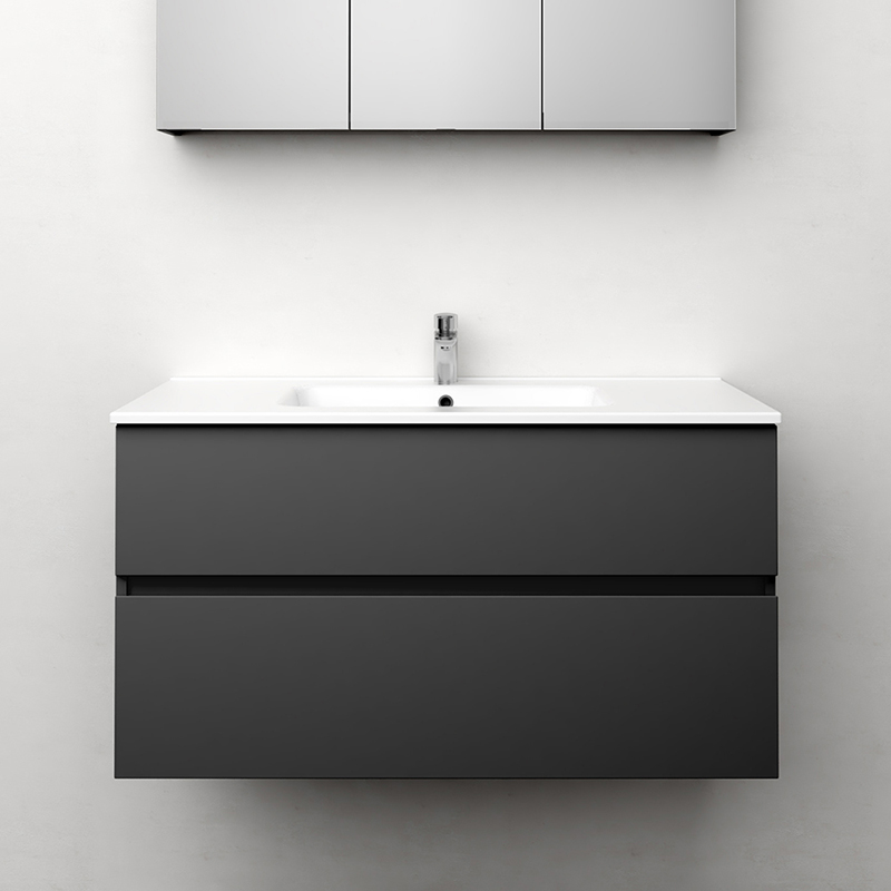 Himmel is a stylish bathroom under cabinet with soft-closing drawers with integrated handles. The drawers have full pull-outs and drawer sides made of metal. A removable mat at the bottom of the drawers keeps things in place and makes it easier to clean. The upper drawer has a U-shape that leaves space for water traps. The furniture is prepared for both floor and wall drains and has adjustable hanging fittings. Available in white matte and anthracite. Purchase for water trap.