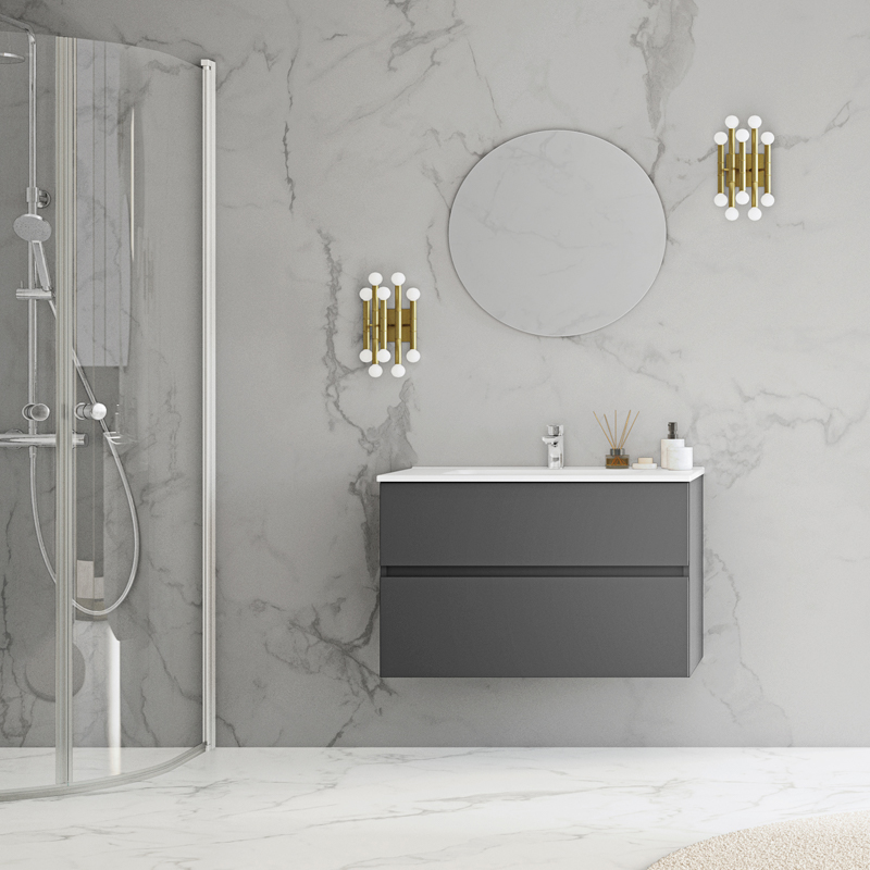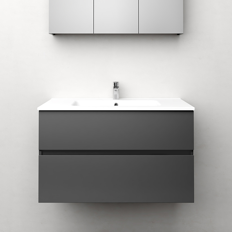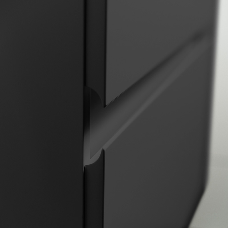 Himmel is a stylish bathroom under cabinet with soft-closing drawers with integrated handles. The drawers have full pull-outs and drawer sides made of metal. A removable mat at the bottom of the drawers keeps things in place and makes it easier to clean. The upper drawer has a U-shape that leaves space for water traps. The furniture is prepared for both floor and wall drains and has adjustable hanging fittings. Available in white matte and anthracite. Purchase for water trap.