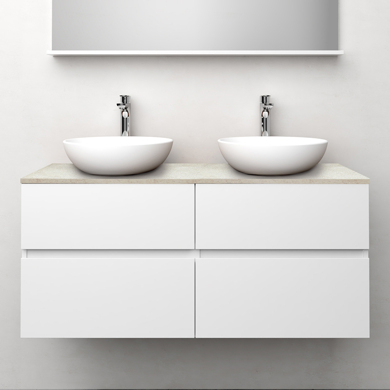 Himmel is a stylish bathroom under cabinet with soft-closing drawers with integrated handles. The drawers have full pull-outs and drawer sides made of metal. A removable mat at the bottom of the drawers keeps things in place and makes it easier to clean. The upper drawer has a U-shape that leaves space for water traps. The furniture is prepared for both floor and wall drains and has adjustable hanging fittings. Available in white matte and anthracite. Purchase for water trap.