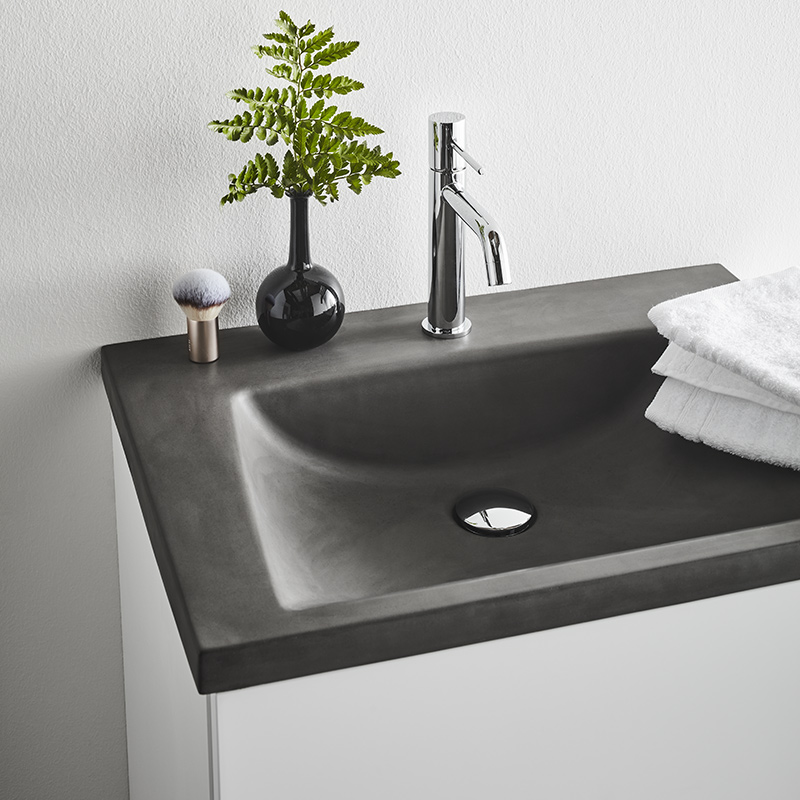 Concrete is a rustic material with natural variations in colour and surface, the material ages when used. Treat the surface of your concrete wash basin regularly, you will find a remedy for concrete at well-stocked specialist retailers. The inside of the washbasin is sealed to close pores and make the surface more resistant to stains. Wipe of water drops with a soft cloth after use to avoid lime coating. If water is left standing in the basin, dark areas may occur which disappear after a few hours. Do not expose the washbasin to water with a temperature higher than 60 ° C or rapid temperature changes. Clean the washbasin with a damp cloth and possibly a little diluted detergent. Always use a soft cloth, avoid steel wool and the like. Avoid cleaners and products containing abrasives, acids, ammonia, acetone or other chemicals (eg scrubbing powder, hair spray, hair colour, bleach, hair removal and nail polish remover etc.). Should you spill any of the above products on the wash basin it should be removed immediately to avoid damage.