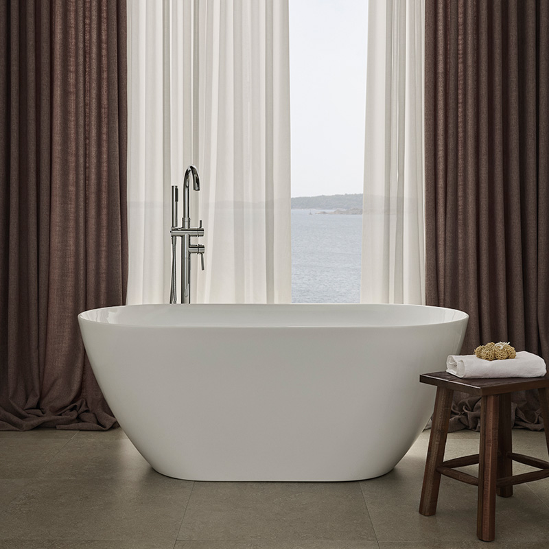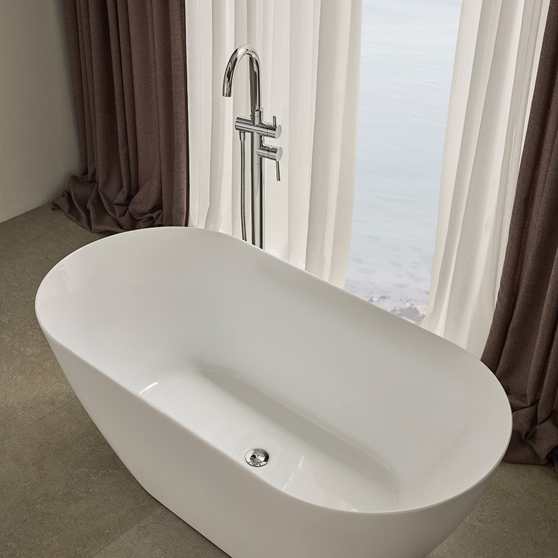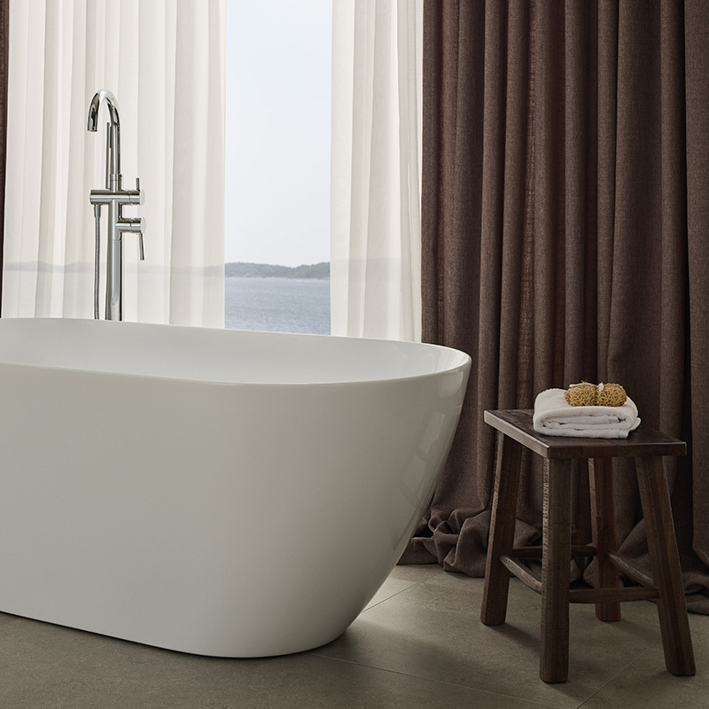 The bathtub is made of double-sided sanitary acrylic, a durable and age-resistant material. The double-sided construction and the shape of the tub ensure that you sit comfortably on both sides of the tub. The well-balanced shape of the bathtub makes it easy to place in all types of bathrooms, modern and classic.
