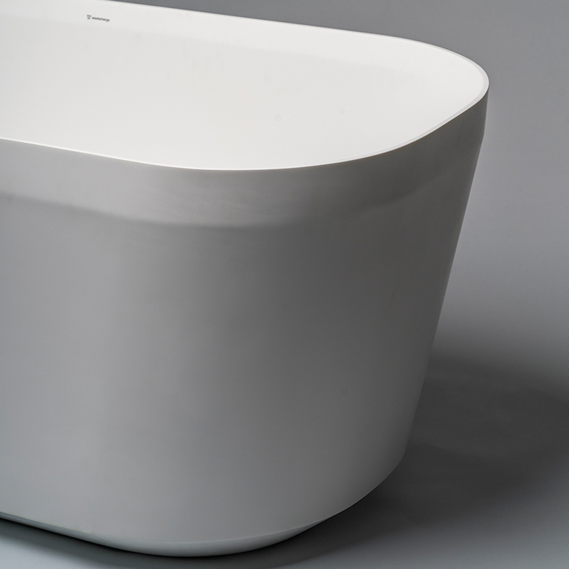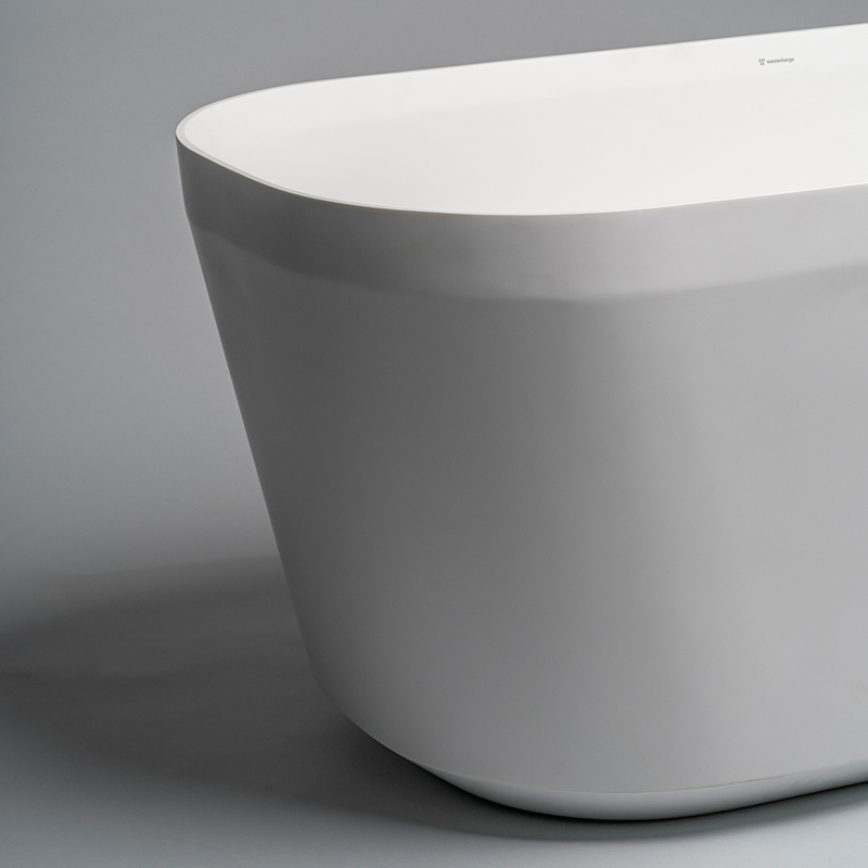 A stylish, slightly conical bath with walls finely polished up to the brim and satin matt surface. Every bath is manufactured by hand from our natural Solid Surface material. Supplied with chrome bottom valve and drain pip.