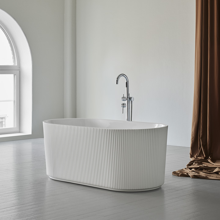 Westerberg's Stil 1600 bathtub is an eye-catcher in your bathroom with a ribbed exterior reminiscent of antique architecture, classic and stylish. Adjustable feet, bottom valve and drainpipe included. Buy a mixer tap.