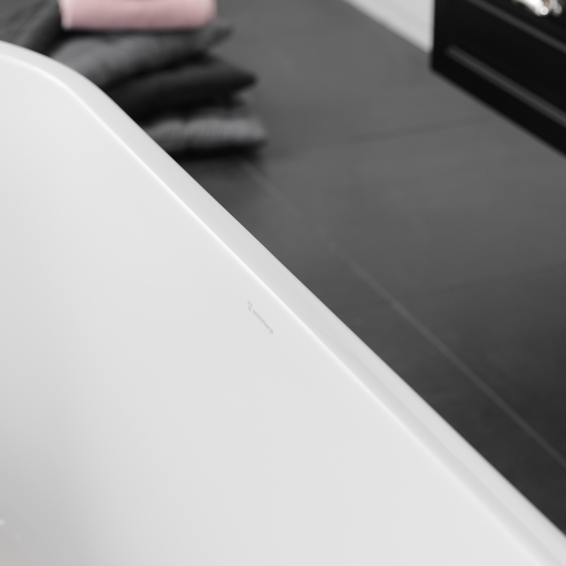 Stylish freestanding bath with fine lines to give an elegant expression. Form and function in fantastic harmony. Can also be placed against a wall. Made of easy-to-clean durable sanitary acrylic.