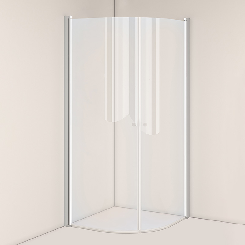 A corner shower with a round shape and a magnetic lock. Delightfully spacious with doors that can be folded in to save space. The shower doors have integrated handles and lifting hinges that lift them 3 mm when opening and closing.