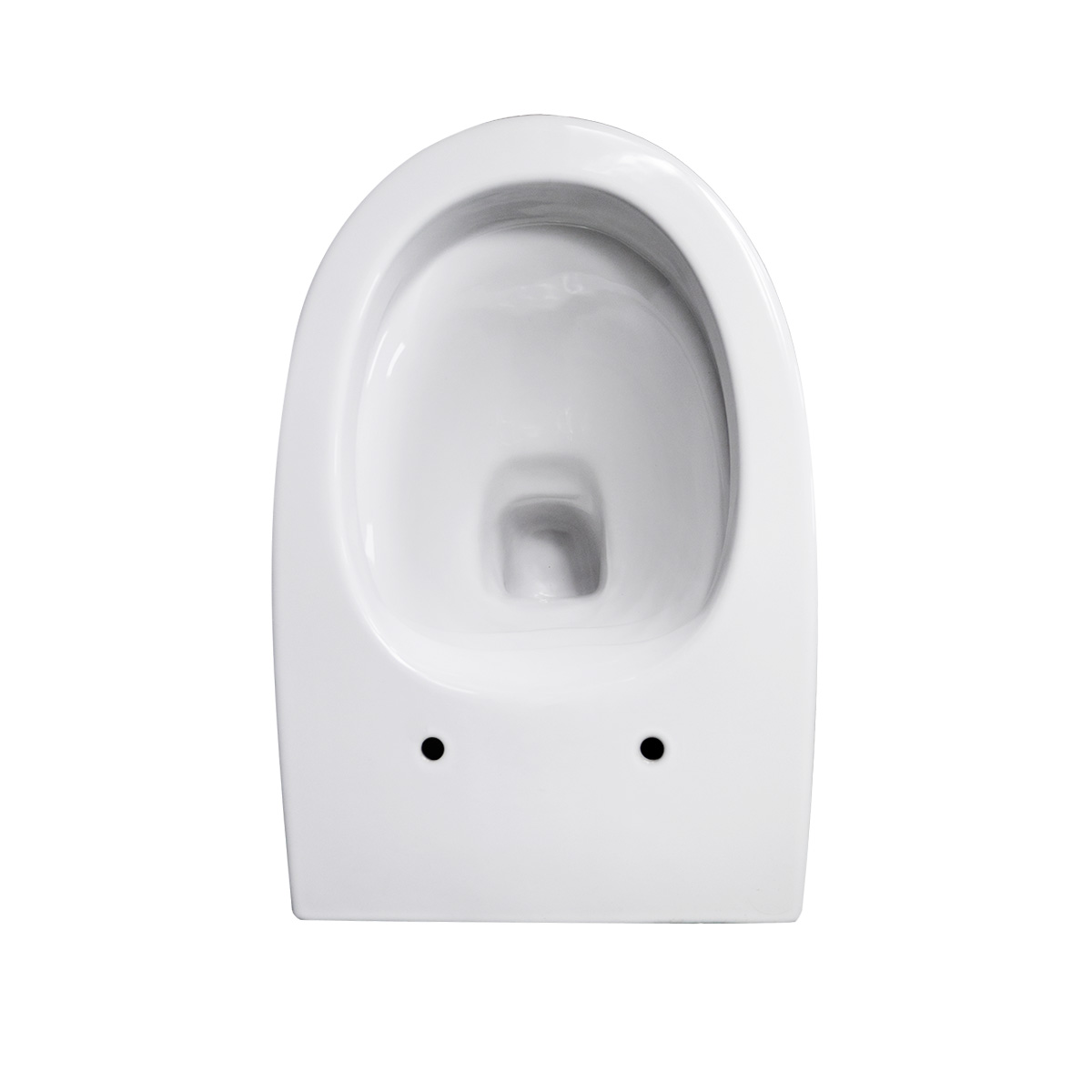 Toilet Droppe of porcelian has a modern shape fitting most modern style bathrooms. The toilet surfaces and the floor below is easy to clean as it is rimless and wall hung. Soft toilet seat included.